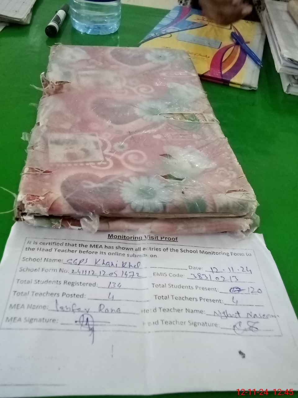 | EMIS Code: 38310213 | Name of School: GGPS KHANI KHEL | |||