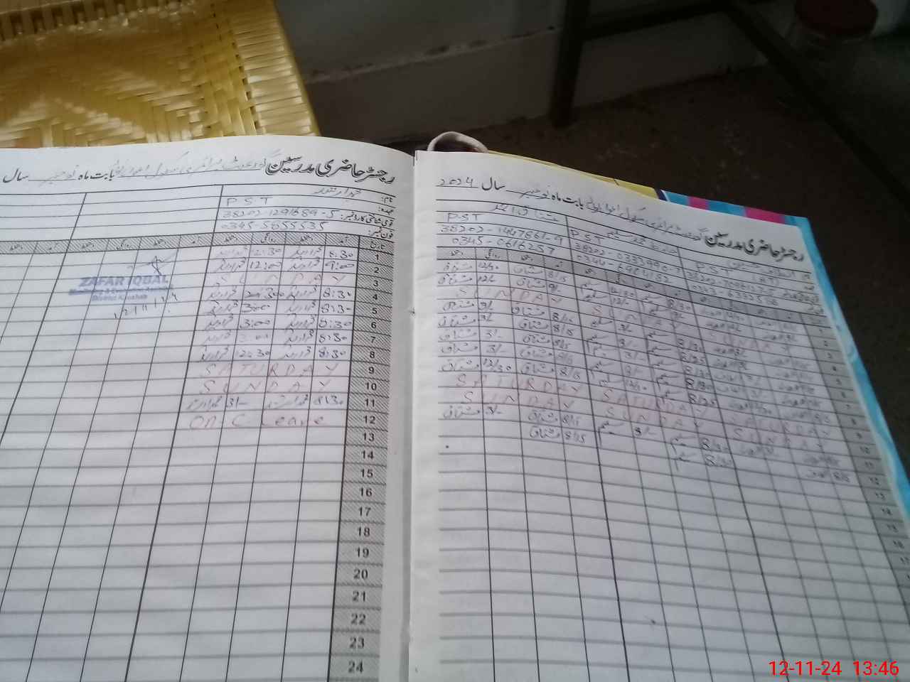 | CNIC | Full Name | Designation | R/C | Absence During Last Calender Month |