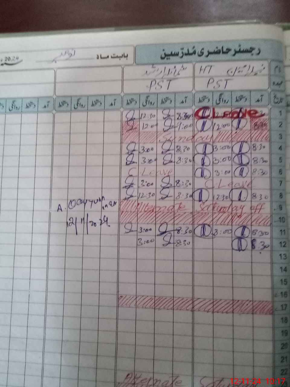 | CNIC | Full Name | Designation | R/C | Absence During Last Calender Month |
