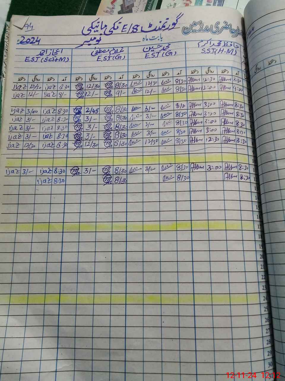 | CNIC | Full Name | Designation | R/C | Absence During Last Calender Month |