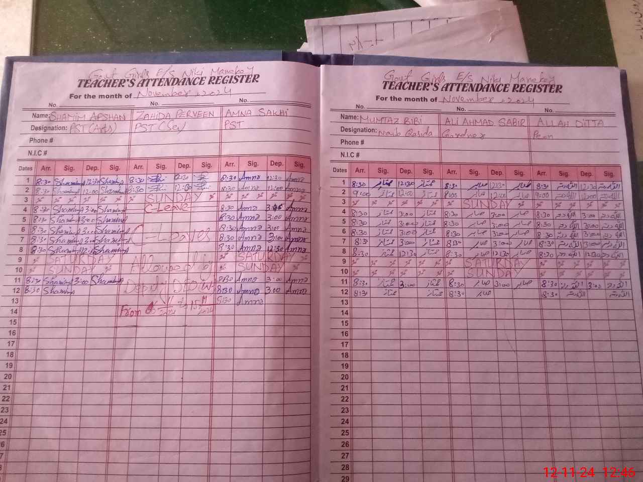 | CNIC | Full Name | Designation | R/C | Absence During Last Calender Month |