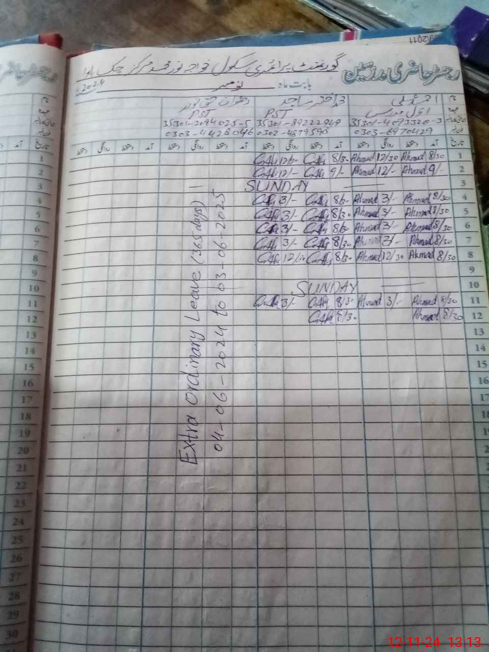 | Name: AH**** AL**** Designation: (School Headmaster's/Headmistress's) PST Phone/Cell Number: 03**** |