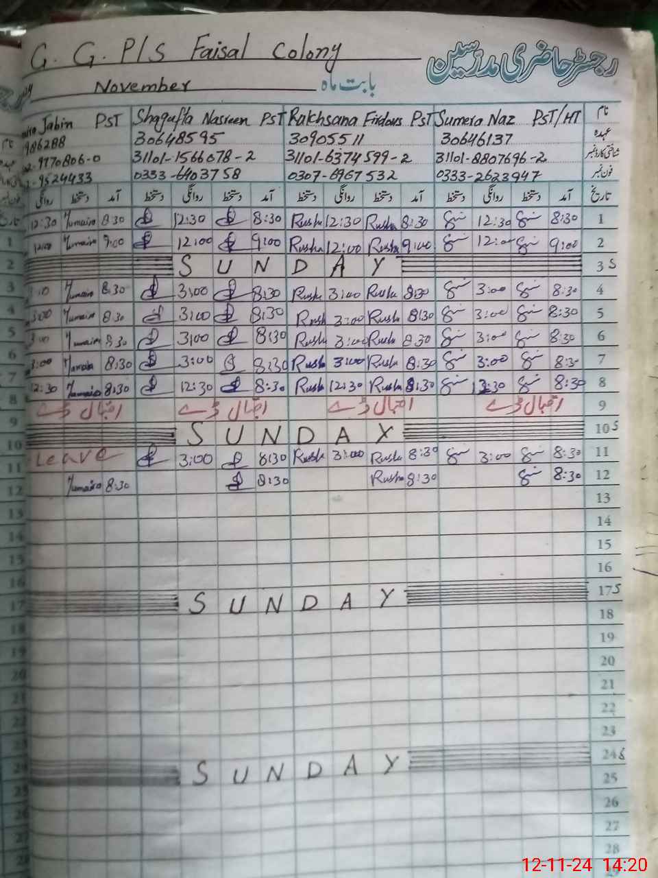 | CNIC | Full Name | Designation | R/C | Absence During Last Calender Month |