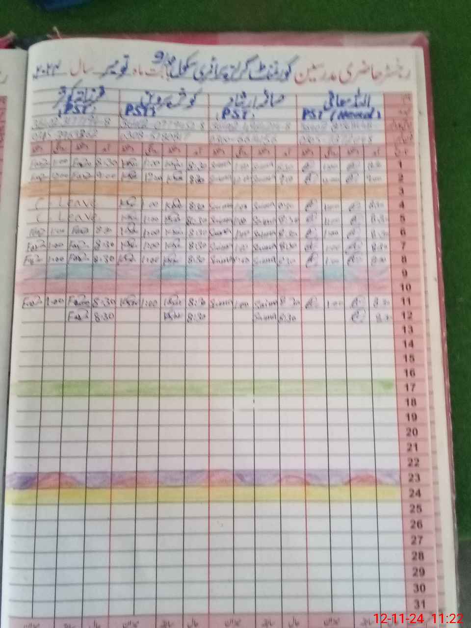 | CNIC | Full Name | Designation | R/C | Absence During Last Calender Month |