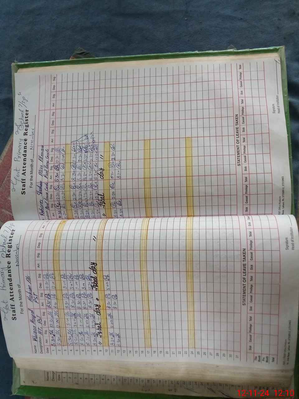 | CNIC | Full Name | Designation | R/C | Absence During Last Calender Month |