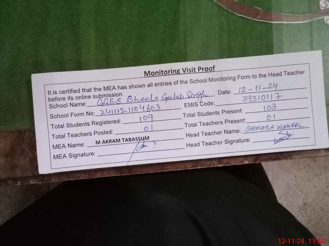 | EMIS Code: 39310117 | Name of School: GGES BHEELA GULAB SINGH | |||