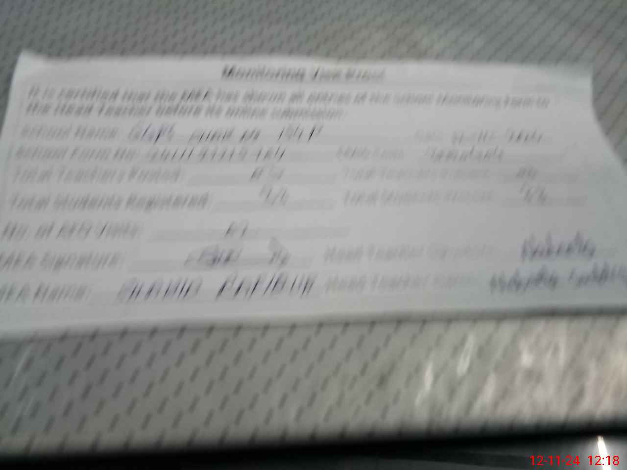 | Monitoring Date: 12-11-2024 | Start Time: 12-11-2024 12:00 PM | End Time: 12-11-2024 12:21 PM | Name of MEA: Sh**** Ra**** | |