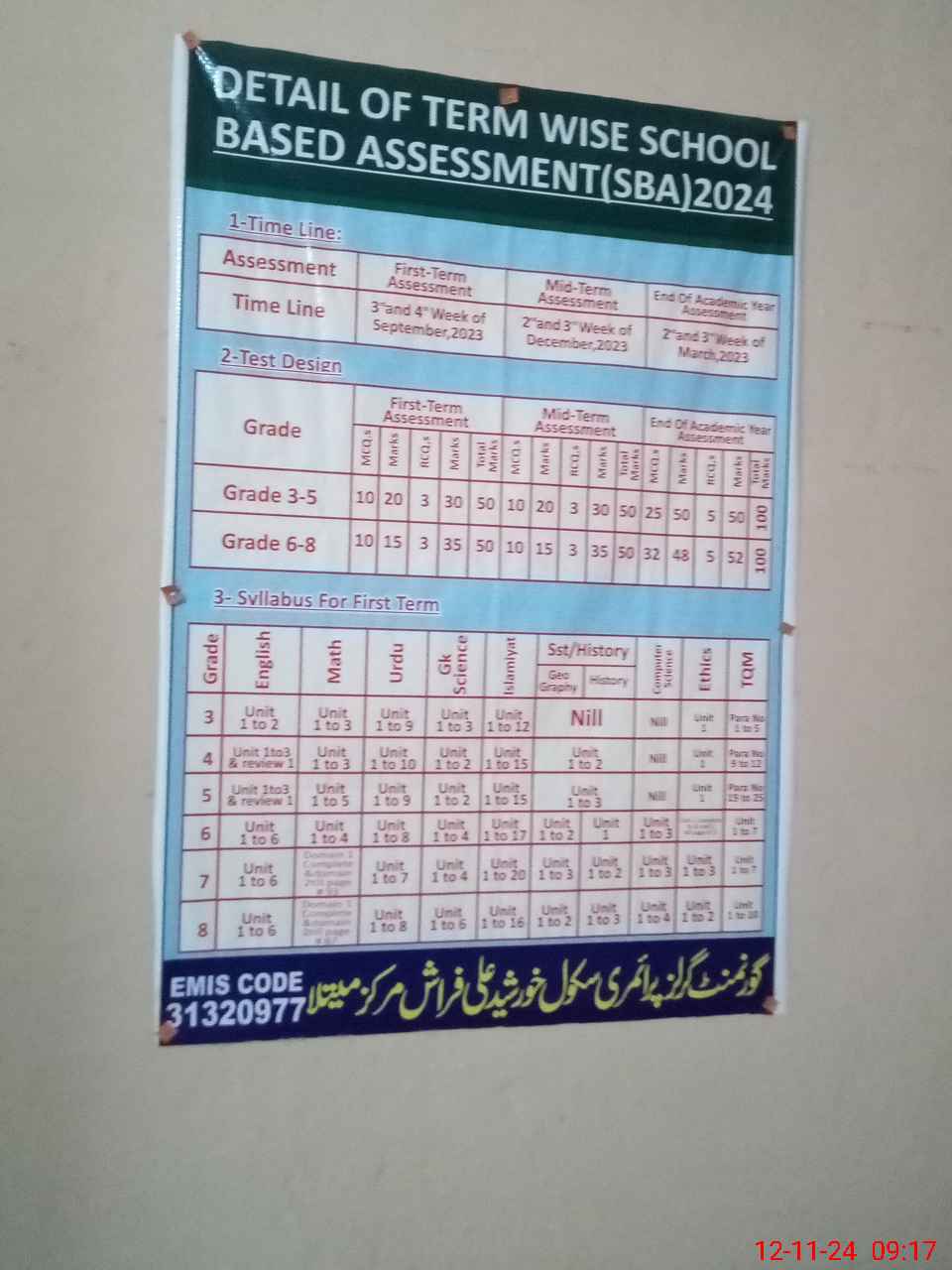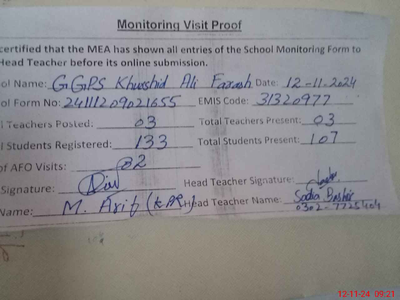 | EMIS Code: 31320977 | Name of School: GGPS KHURSHID ALI FRASH | |||