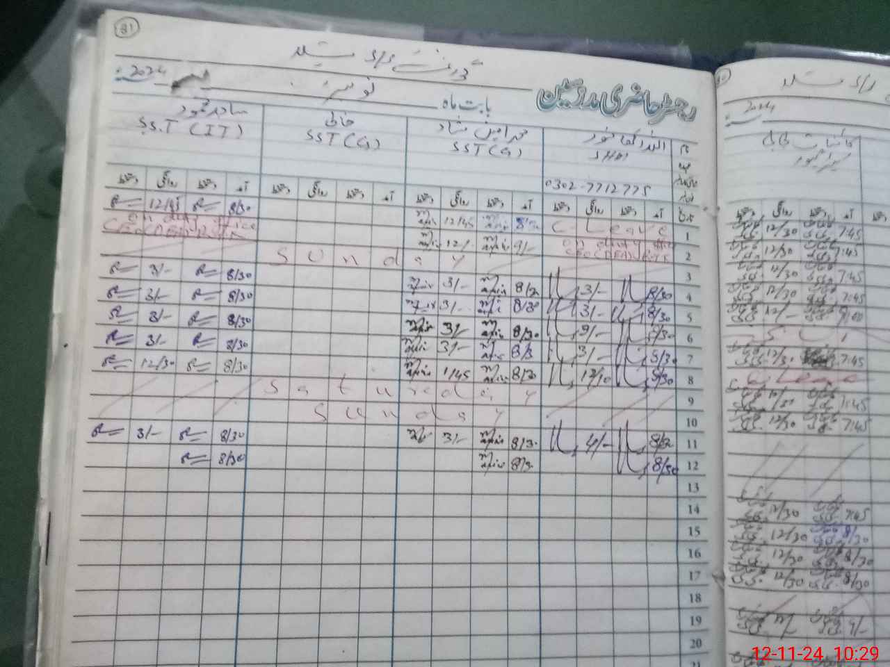 | CNIC | Full Name | Designation | R/C | Absence During Last Calender Month |