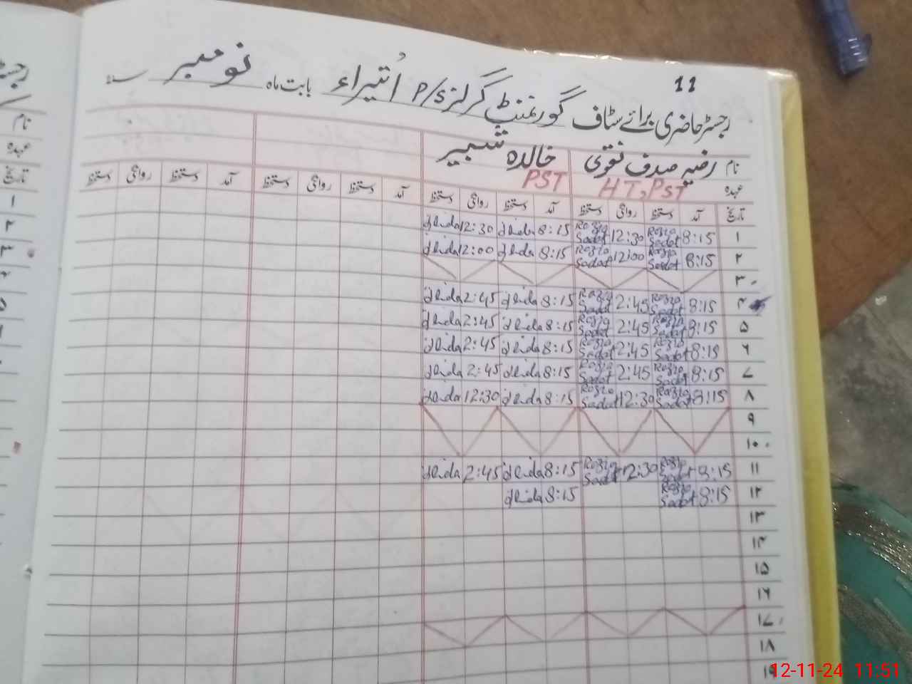 | CNIC | Full Name | Designation | R/C | Absence During Last Calender Month |