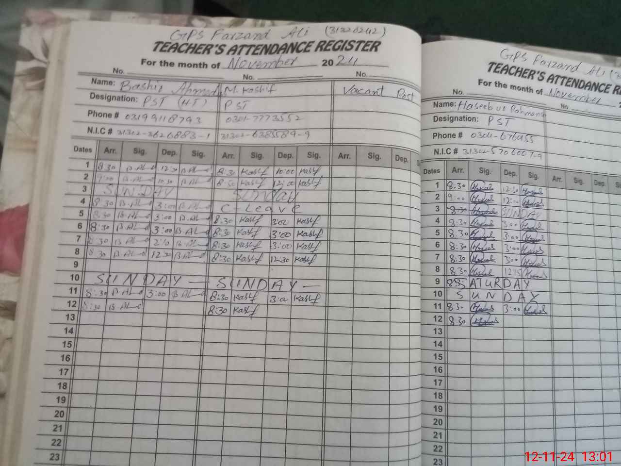 | Name: BA**** AH**** Designation: (School Headmaster's/Headmistress's) PST/PTC/JV Phone/Cell Number: 03**** |