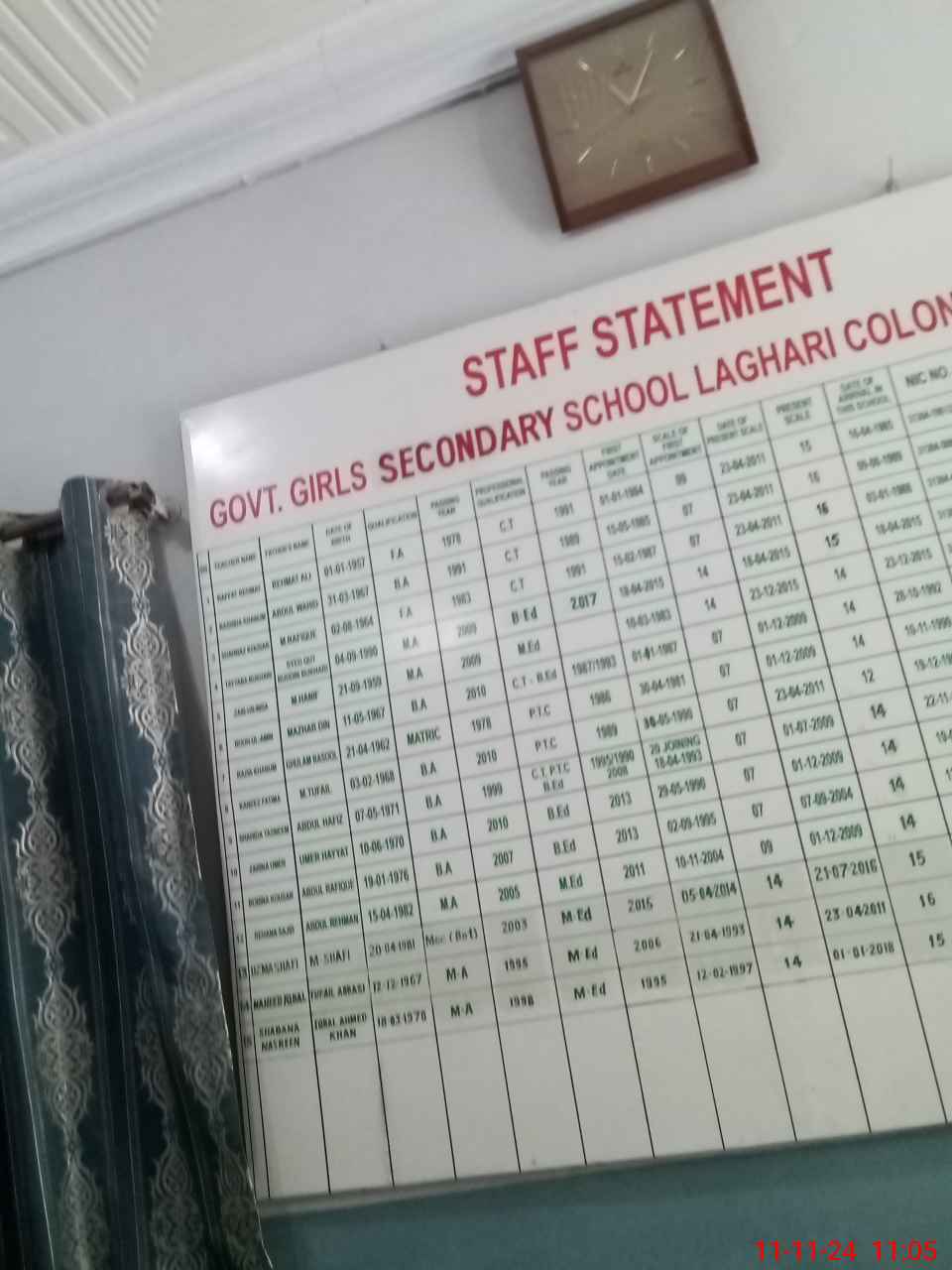 | EMIS Code: 31340074 | Name of School: GGHS LEGHARI COLONY | |||