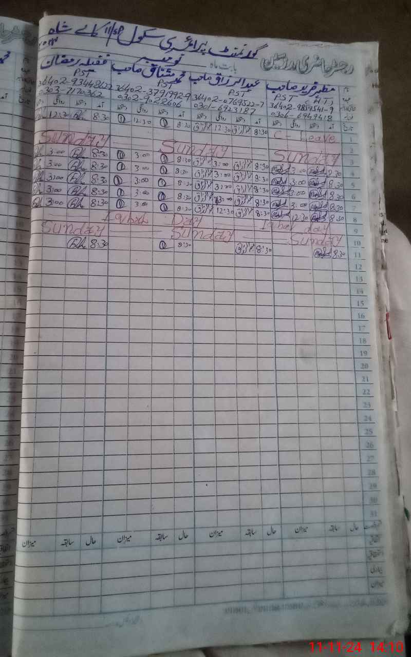 | Name: MA**** FA**** Designation: (School Headmaster's/Headmistress's) PST Phone/Cell Number: 03**** |