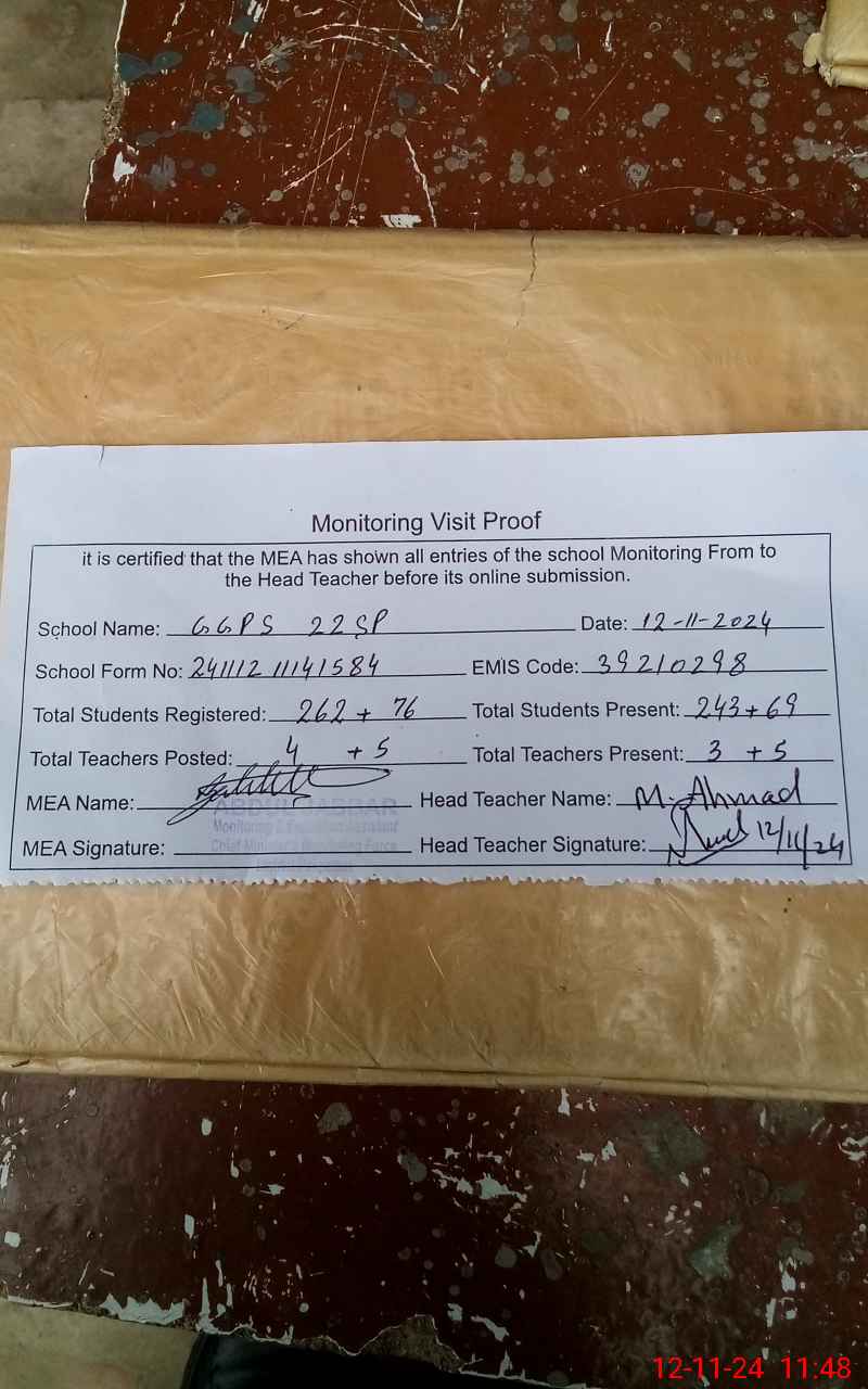 | EMIS Code: 39210298 | Name of School: GPS 22 SP | |||