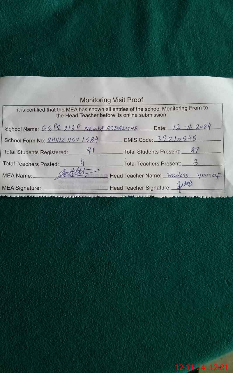 | EMIS Code: 39210545 | Name of School: GGPS 21/SP (Newly Established) | |||