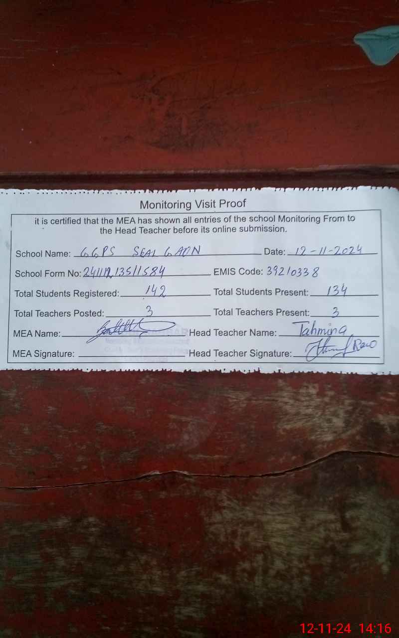 | EMIS Code: 39210338 | Name of School: GGPS SEEL GAON | |||