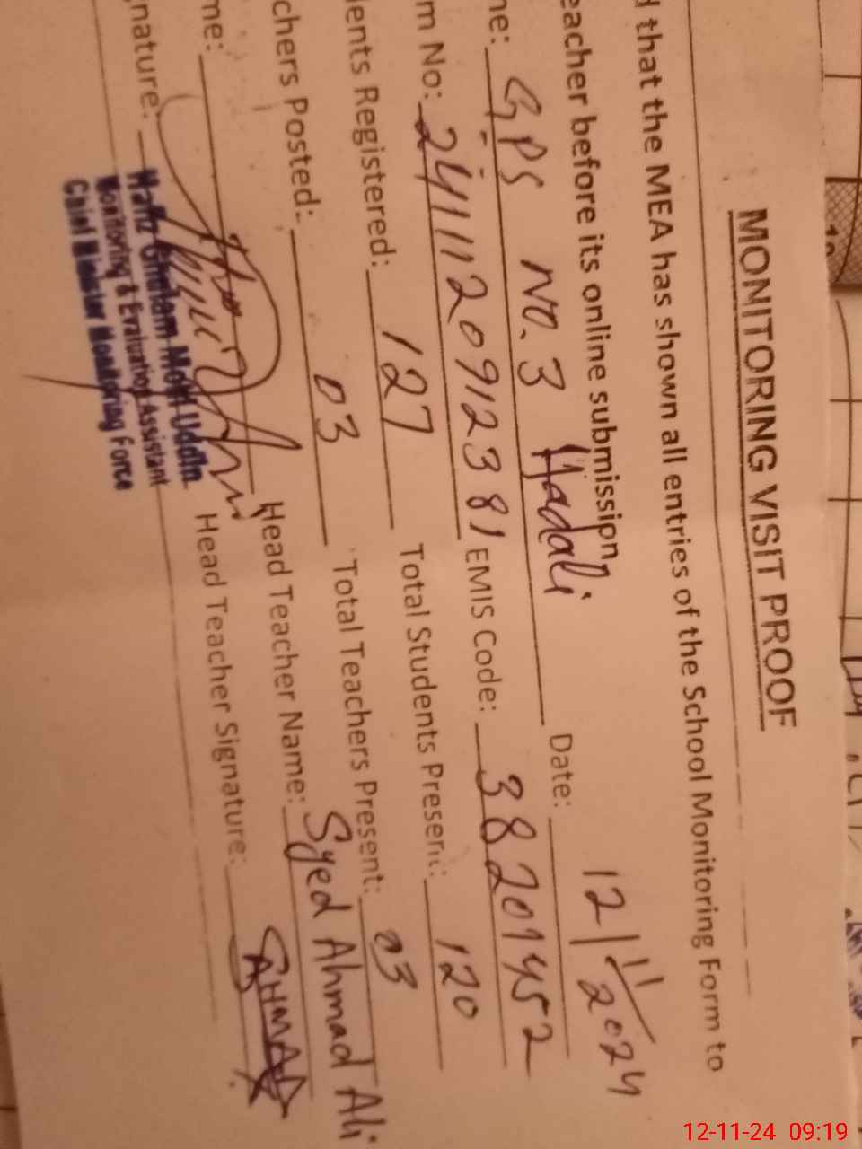 | EMIS Code: 38210452 | Name of School: GPS NO. 3 HADALI | |||