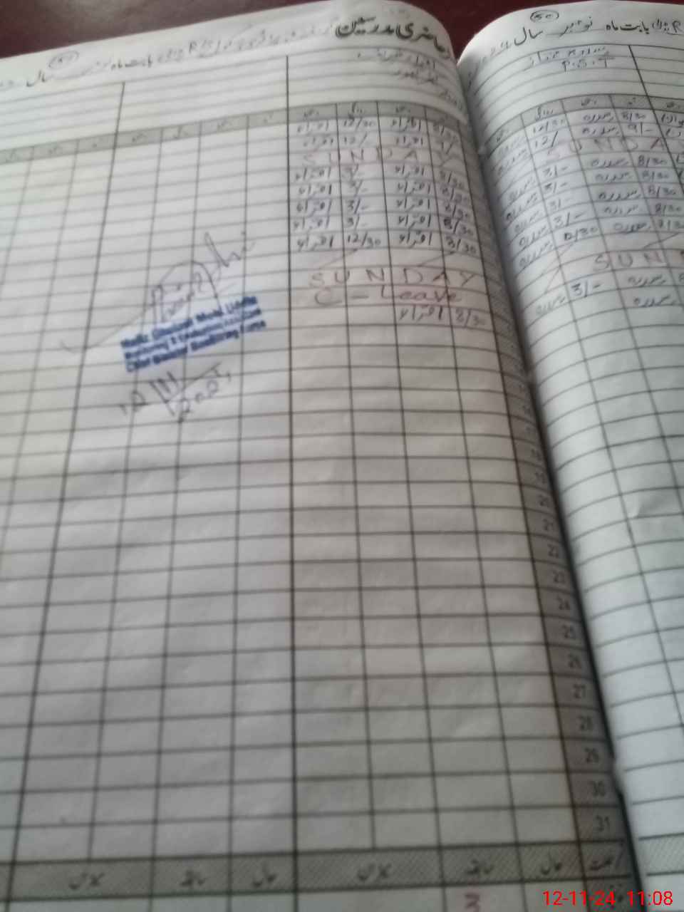 | CNIC | Full Name | Designation | R/C | Absence During Last Calender Month |