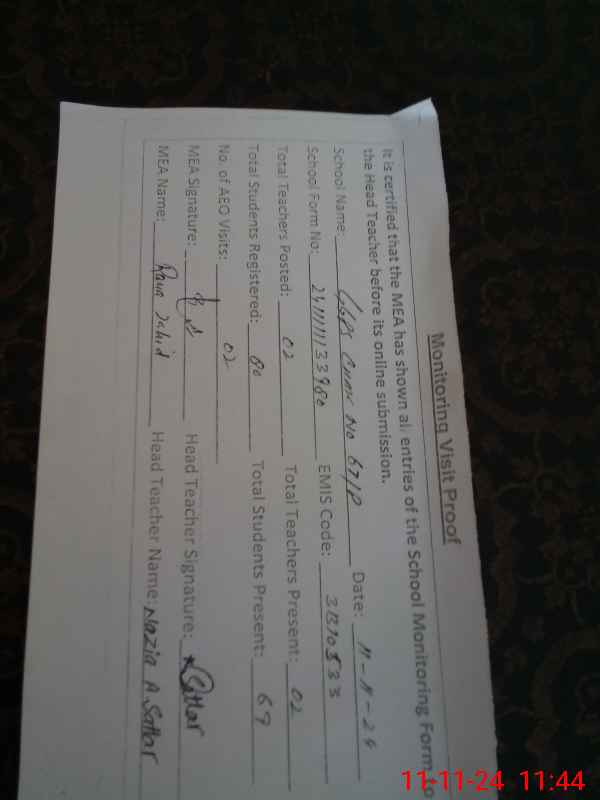 | Certified that this School was Inspected by the Undersigned MEA/DMO Today and the Information Stated Above is as Per Record. | |||||