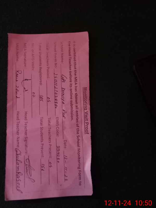 | EMIS Code: 31310240 | Name of School: GPS DUNIA PUR | |||