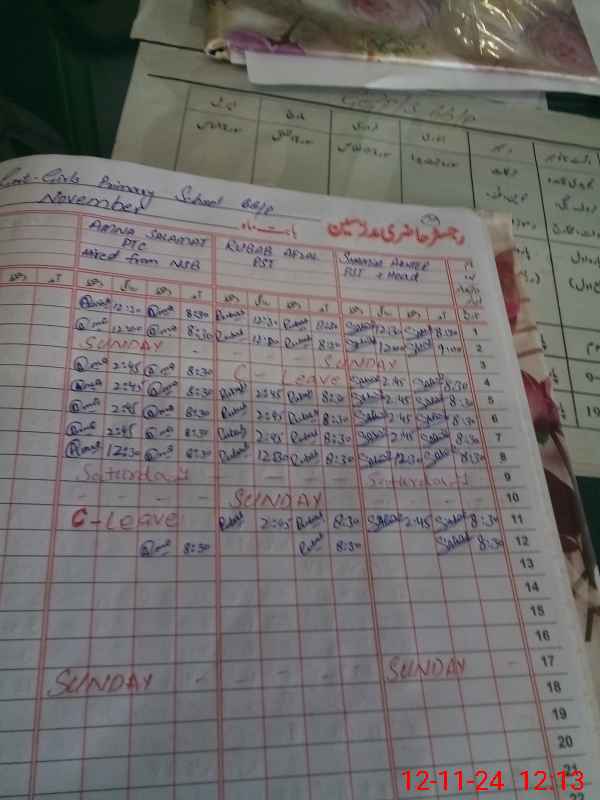 | CNIC | Full Name | Designation | R/C | Absence During Last Calender Month |