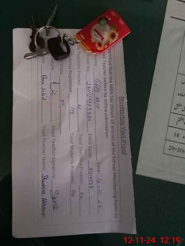 | Name: SH**** AK**** Designation: (School Headmaster's/Headmistress's) PST Phone/Cell Number: 03**** |