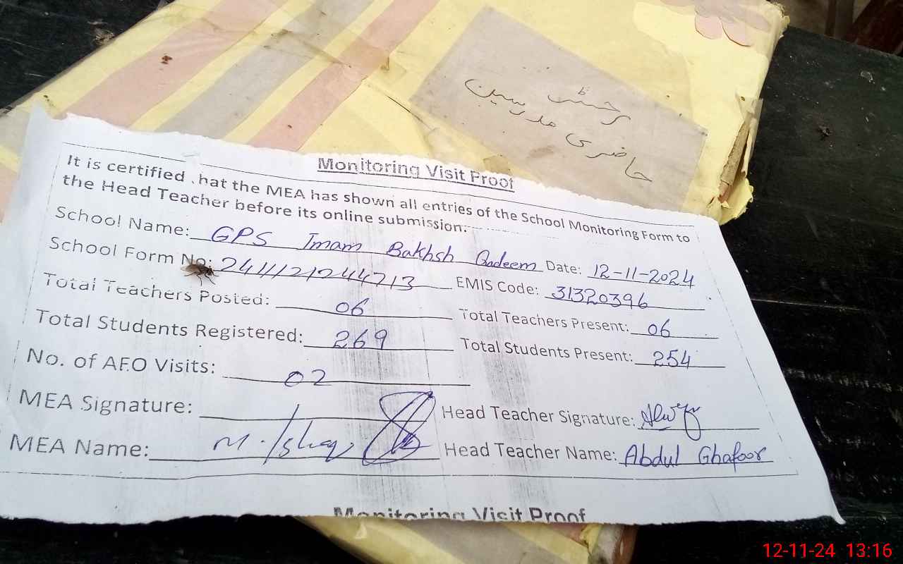 | EMIS Code: 31320396 | Name of School: GPS IMAM BAKHSH QADEEM | |||
