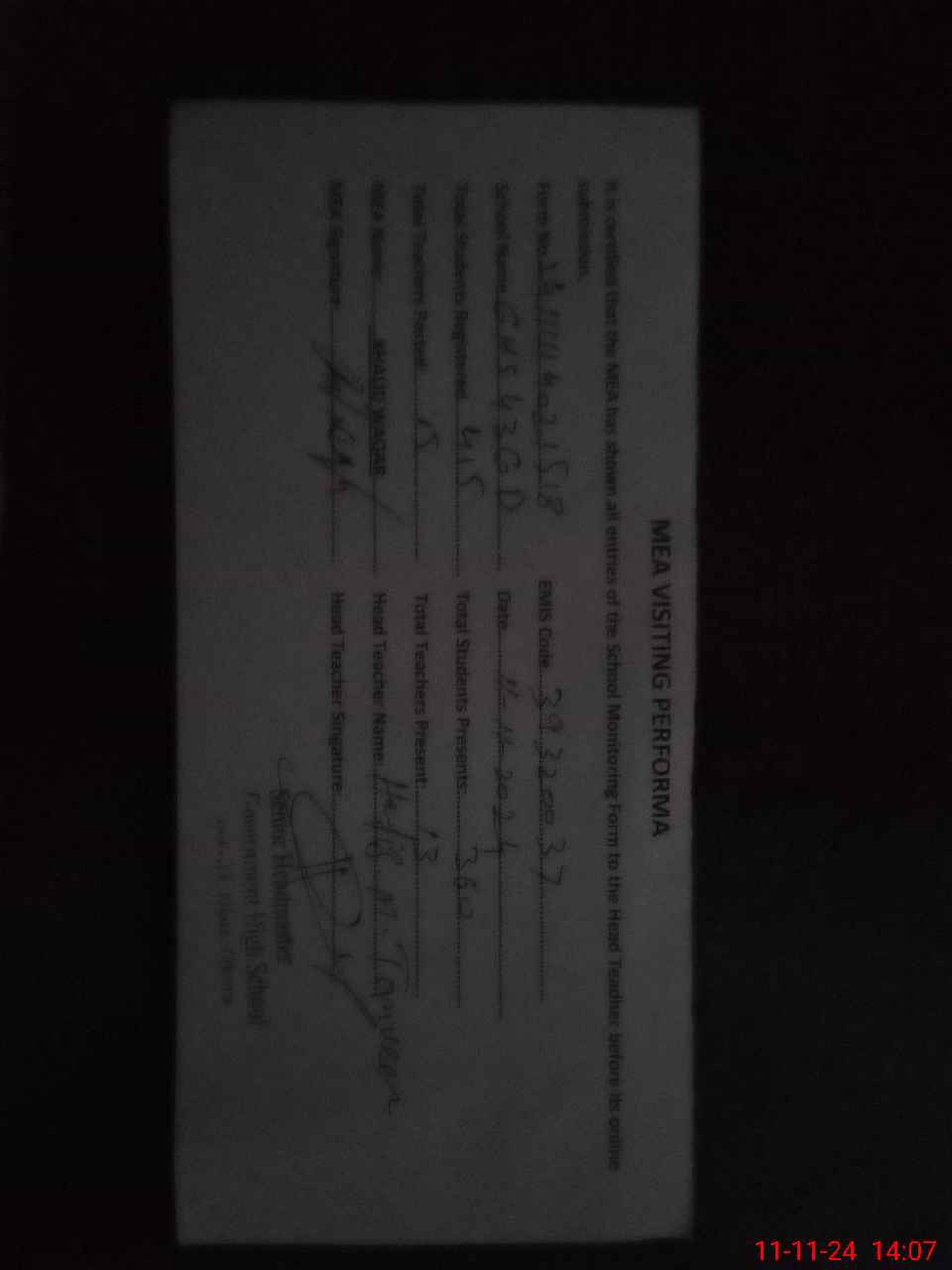 | Certified that this School was Inspected by the Undersigned MEA/DMO Today and the Information Stated Above is as Per Record. | |||||