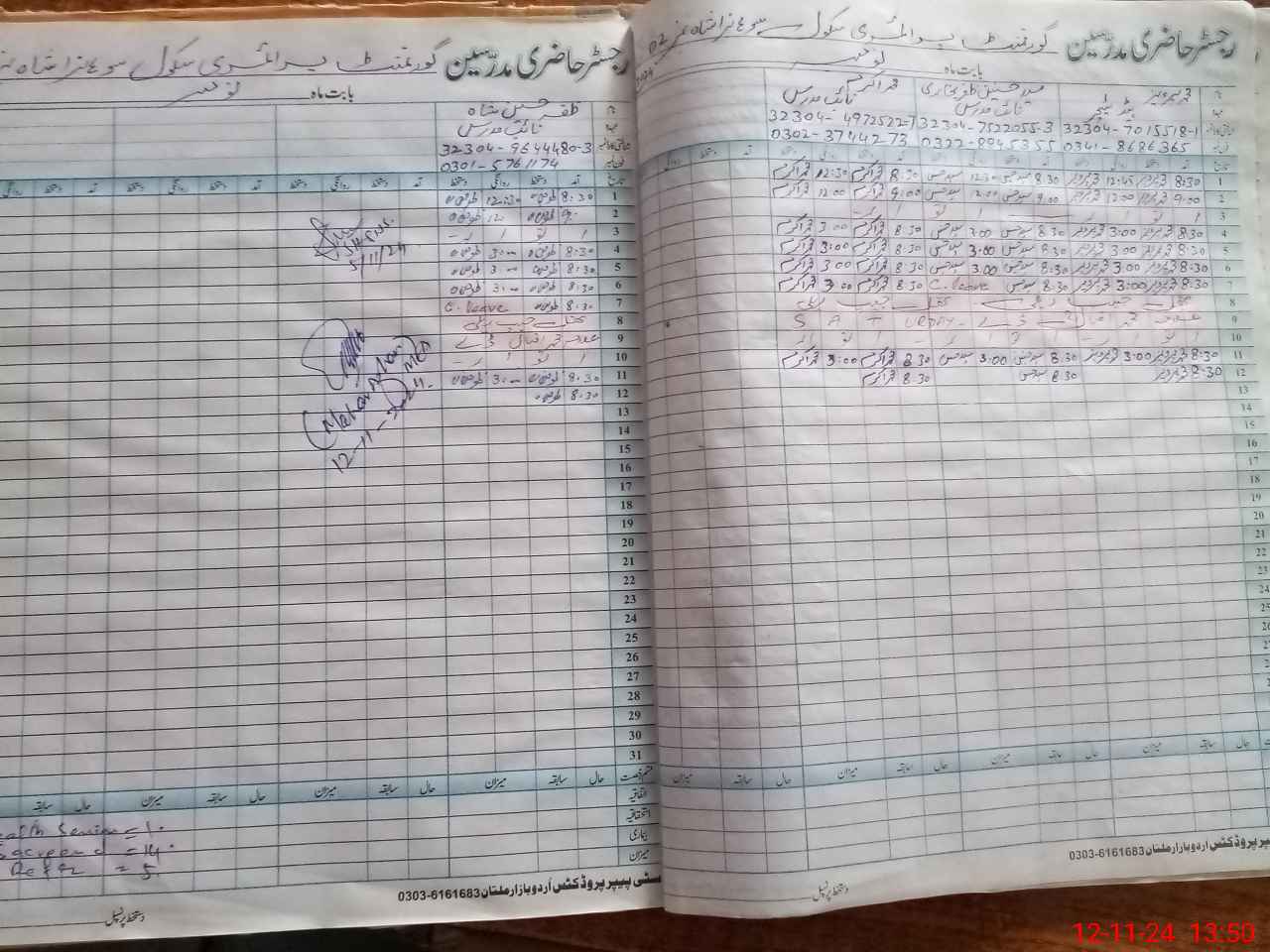 | Name: MU**** PE**** Designation: (School Headmaster's/Headmistress's) PST Phone/Cell Number: 03**** |