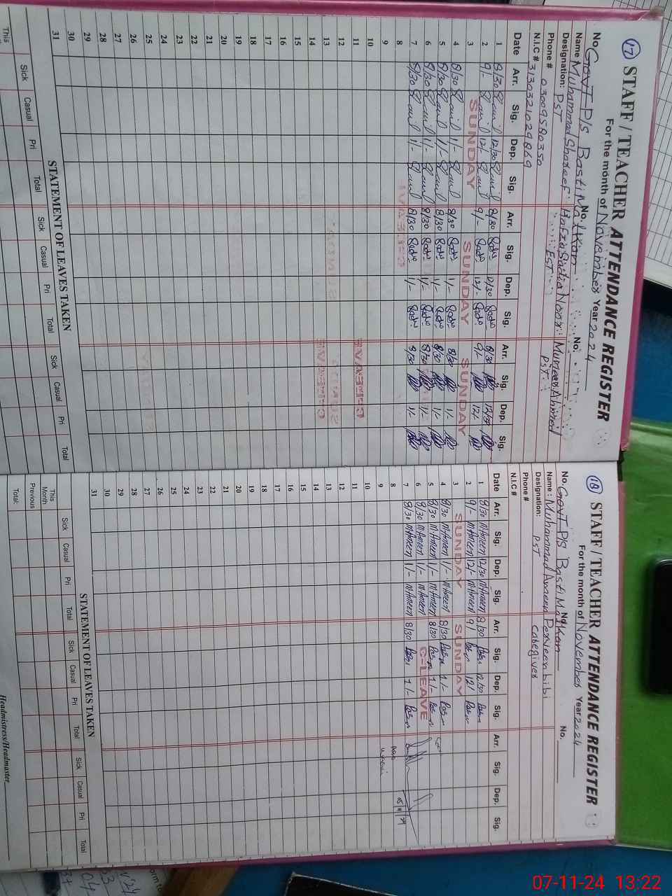| Name: Mo**** SH**** Designation: (School Headmaster's/Headmistress's) PST Phone/Cell Number: 03**** |