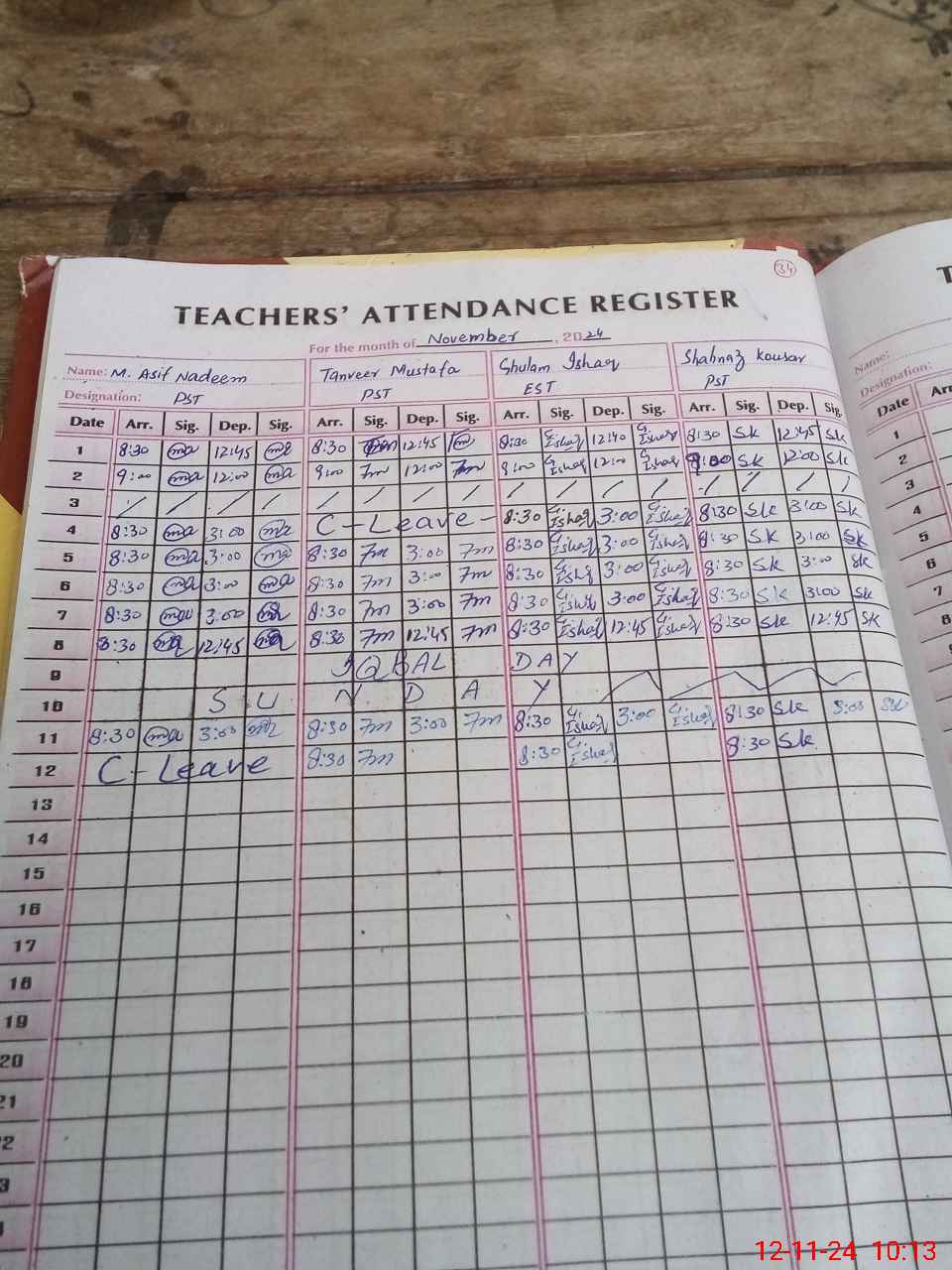 | CNIC | Full Name | Designation | R/C | Absence During Last Calender Month |
