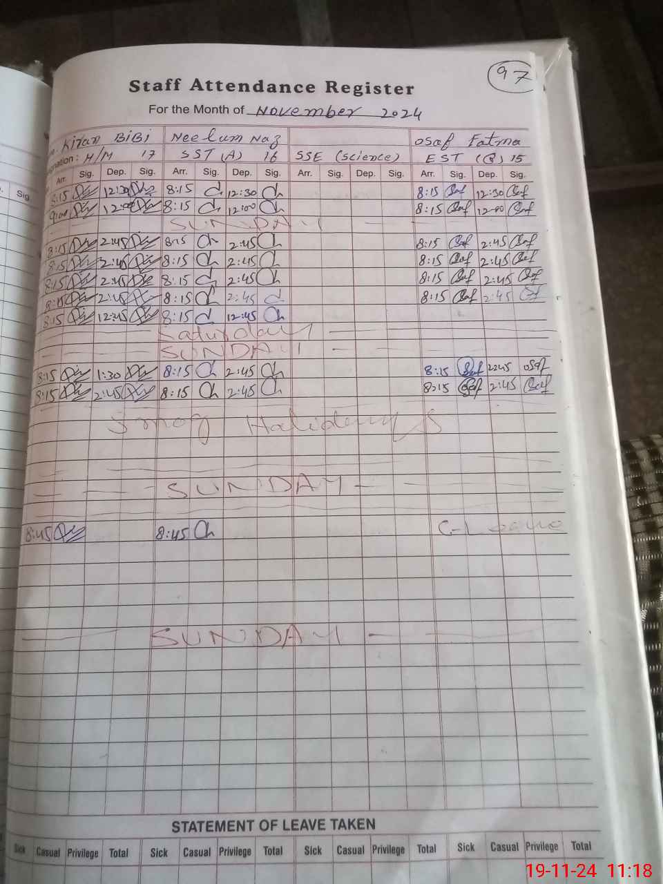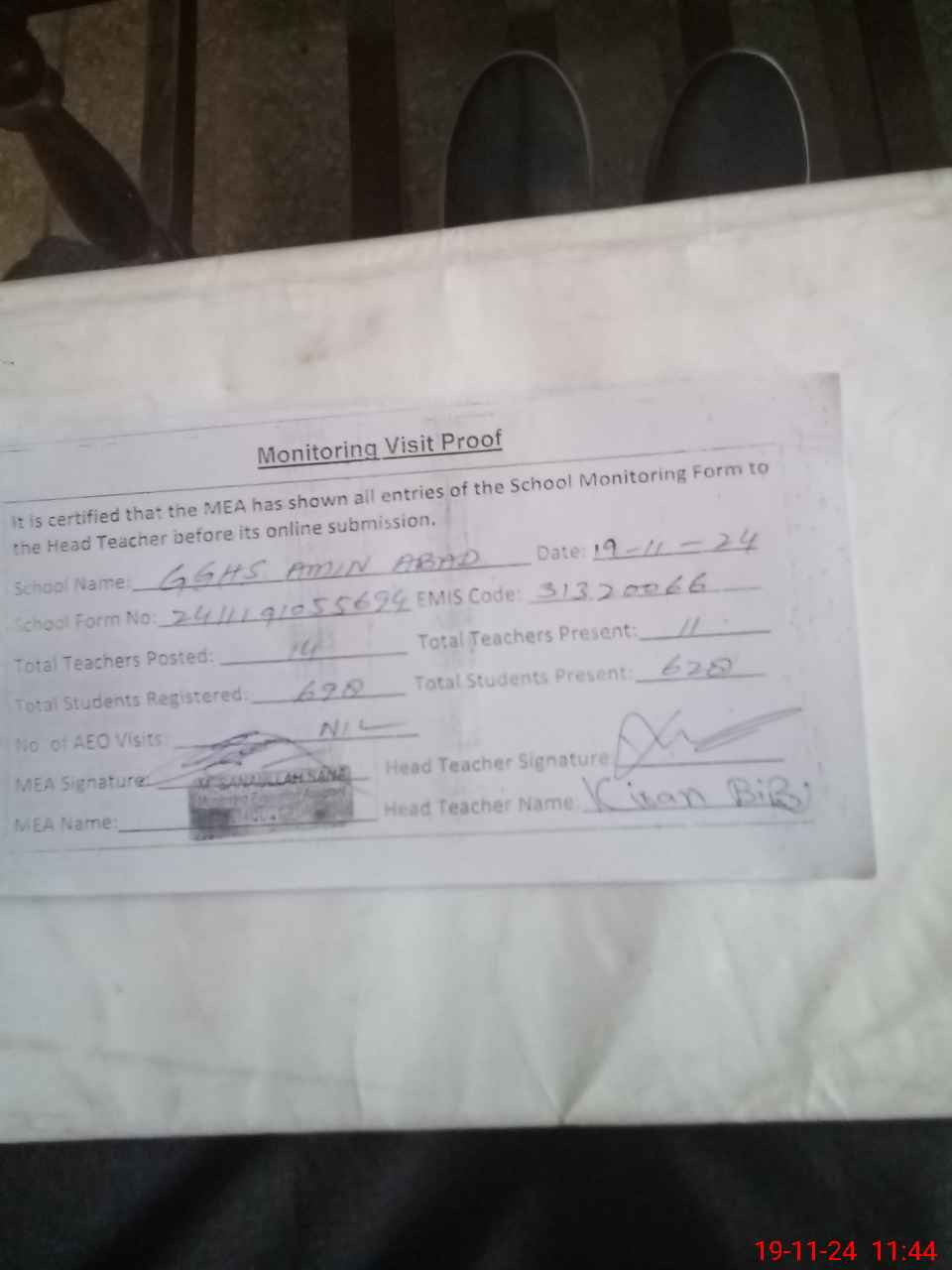 | Monitoring Date: 19-11-2024 | Start Time: 19-11-2024 10:55 AM | End Time: 19-11-2024 11:45 AM | Name of MEA: Mu**** Sa**** Ul**** Sa**** | |