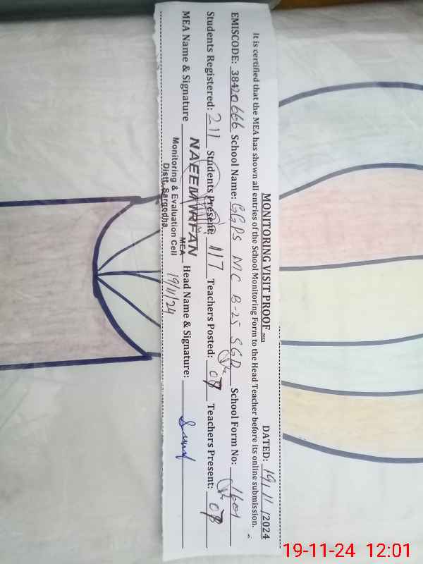 | EMIS Code: 38420666 | Name of School: GGPS MC BLOCK NO.25 SARGODHA | |||