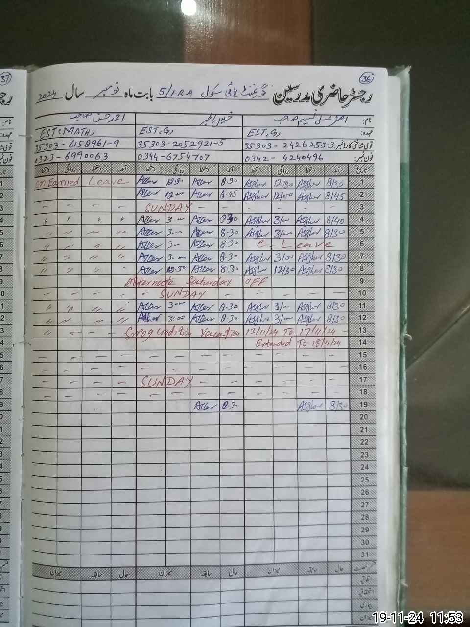 | CNIC | Full Name | Designation | R/C | Absence During Last Calender Month |