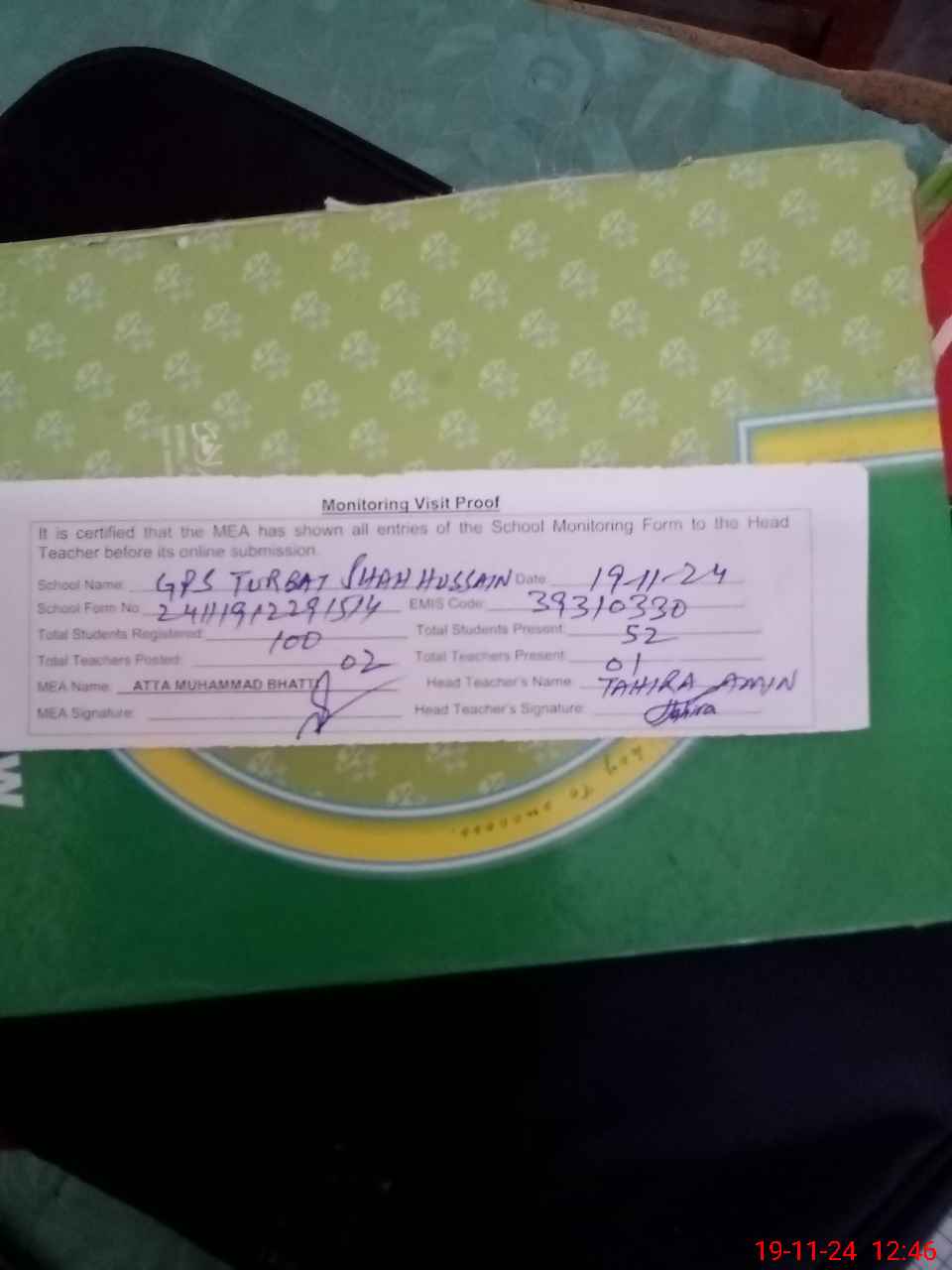 | EMIS Code: 39310330 | Name of School: GPS TURBAT SHAH HUSSAIN | |||