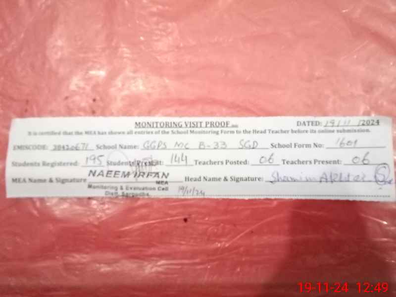 | EMIS Code: 38420671 | Name of School: GGPS MC BLOCK NO.33 SARGODHA | |||