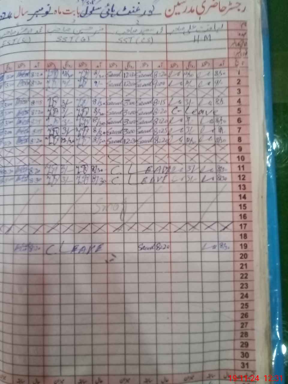 | CNIC | Full Name | Designation | R/C | Absence During Last Calender Month |
