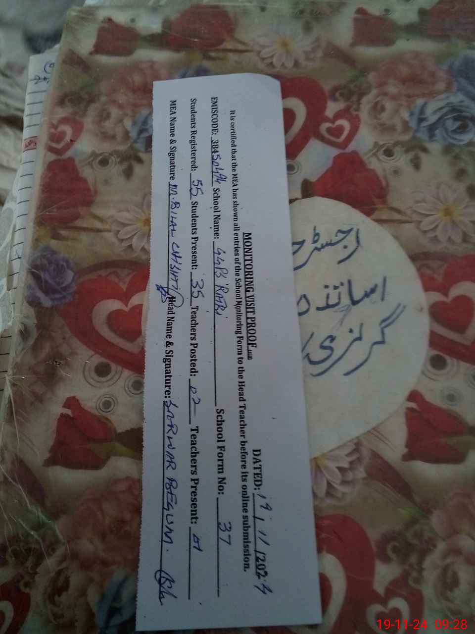 | Attendance Register | Head Teacher | MEA with School | Visit Proof |