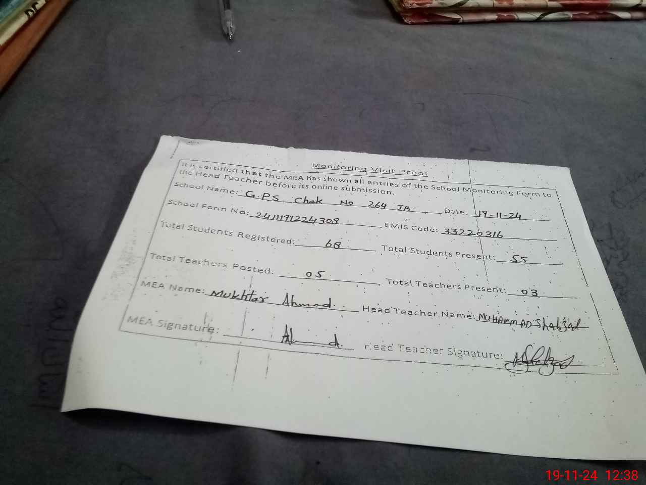 | EMIS Code: 33220316 | Name of School: GPS CHAK NO 264 JB | |||