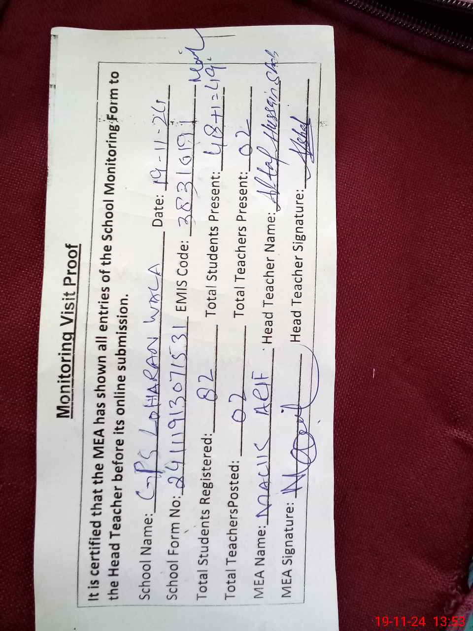 | EMIS Code: 38310191 | Name of School: GPS LOHARAN WALA | |||