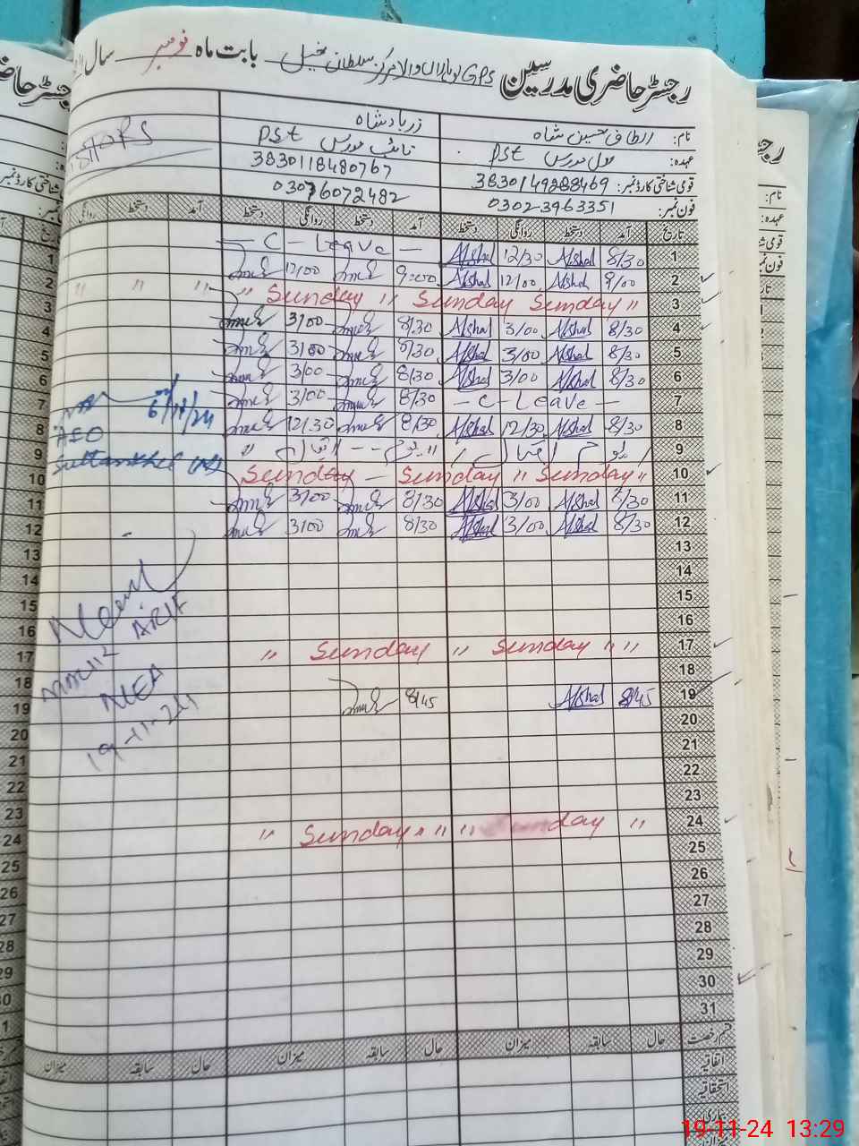 | Name: Al**** Hu**** Sh**** Designation: (School Headmaster's/Headmistress's) PST Phone/Cell Number: 03**** |