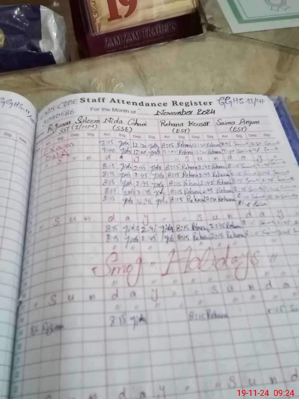 | CNIC | Full Name | Designation | R/C | Absence During Last Calender Month |