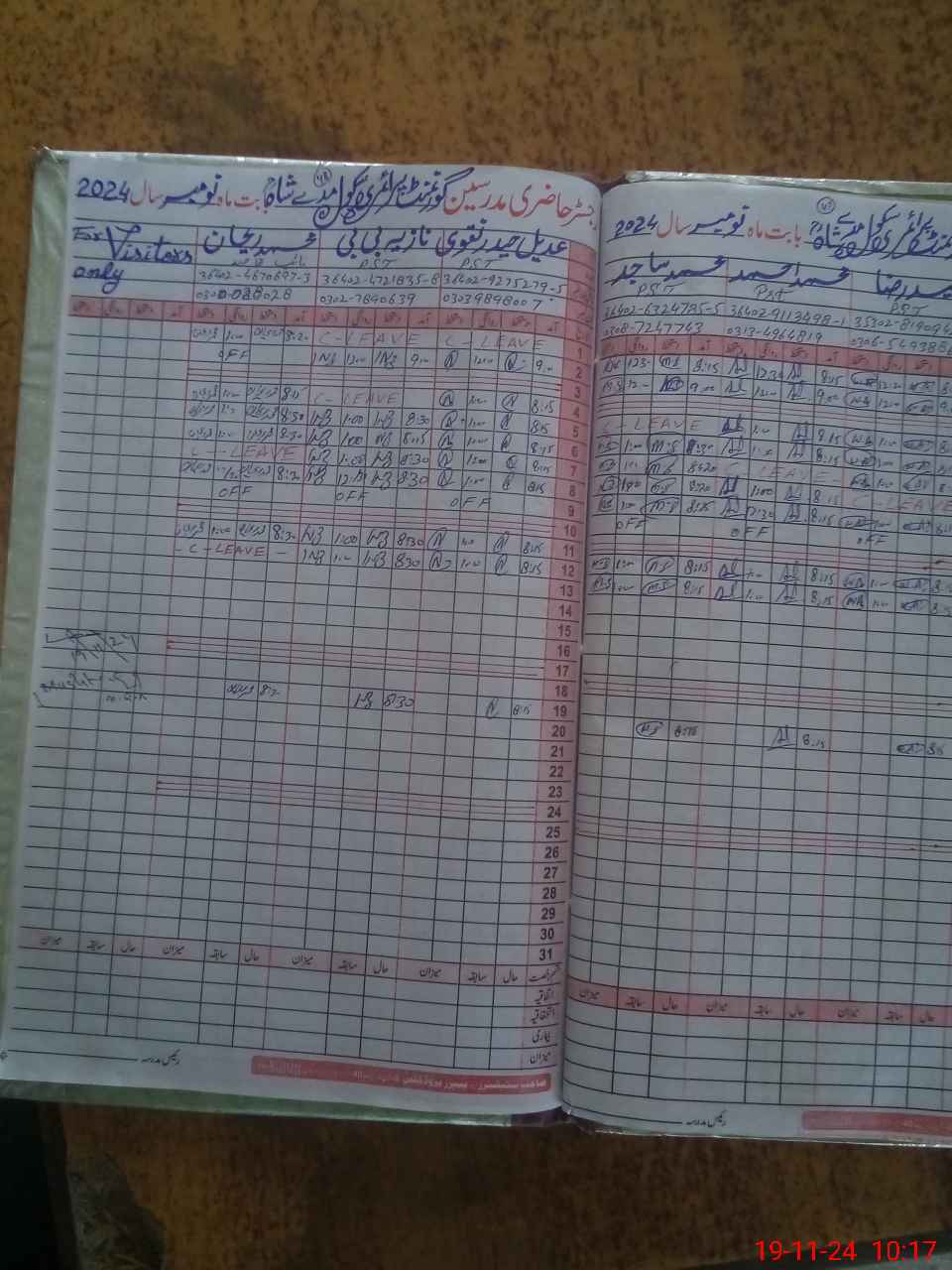| CNIC | Full Name | Designation | R/C | Absence During Last Calender Month |