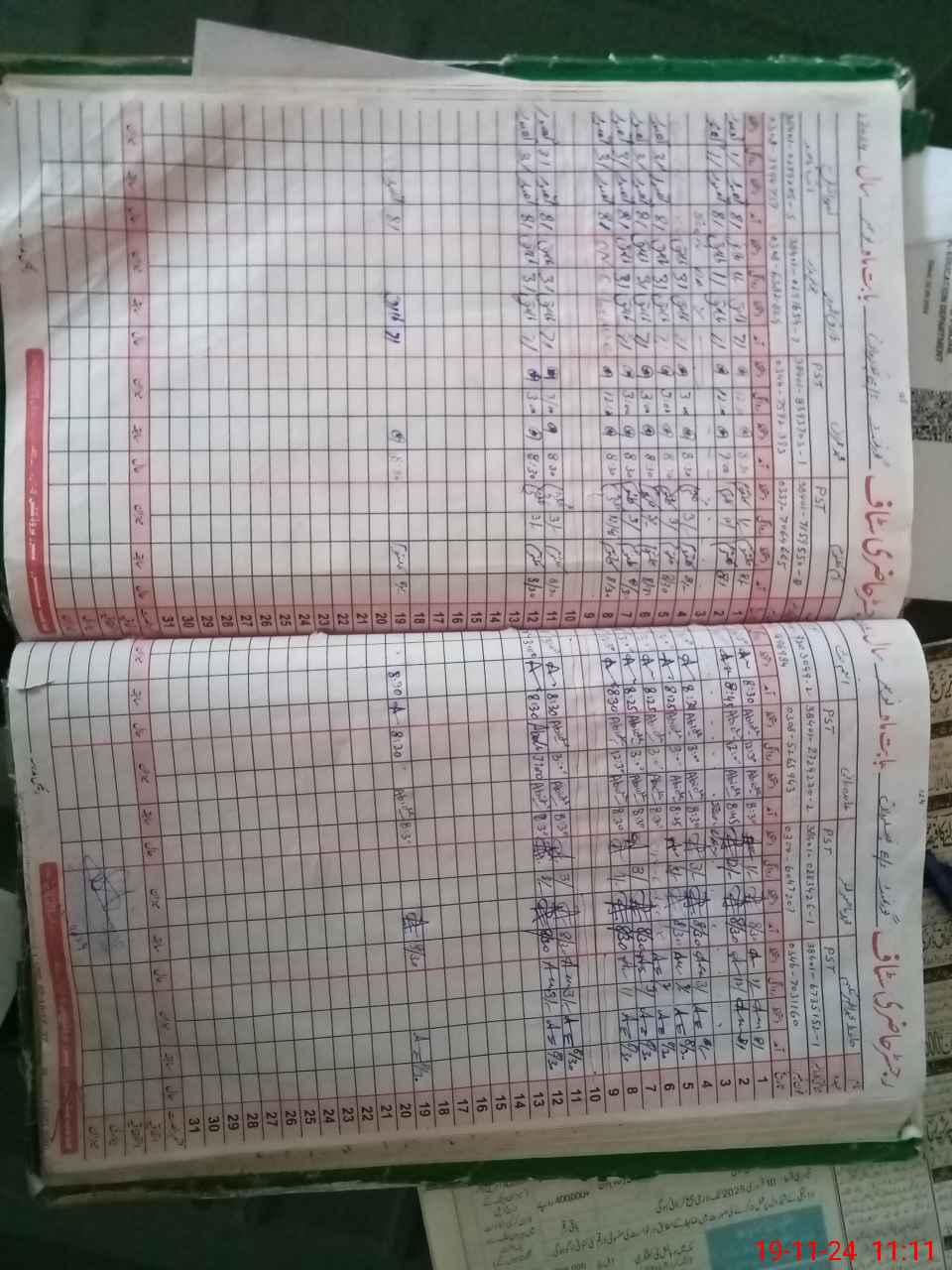 | CNIC | Full Name | Designation | R/C | Absence During Last Calender Month |