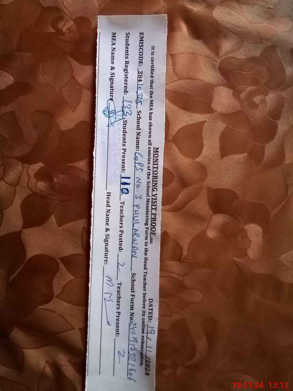 | EMIS Code: 38410325 | Name of School: GPS NO. 3 PHULARWAN | |||