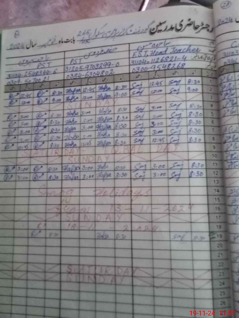 | Name: Sa**** Ha**** Designation: (School Headmaster's/Headmistress's) EST Phone/Cell Number: 03**** |