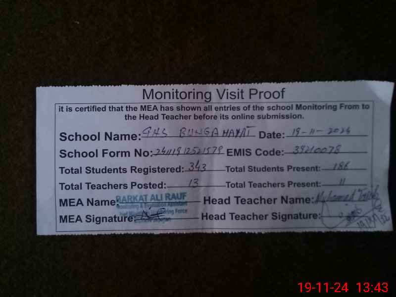 | EMIS Code: 39210078 | Name of School: GHS BUNGA HAYAT | |||