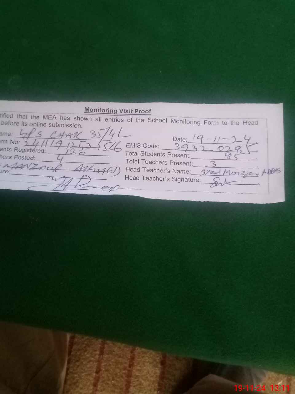 | Name: Sy**** Mo**** Ab**** Designation: (School Headmaster's/Headmistress's) Pst Phone/Cell Number: 03**** |
