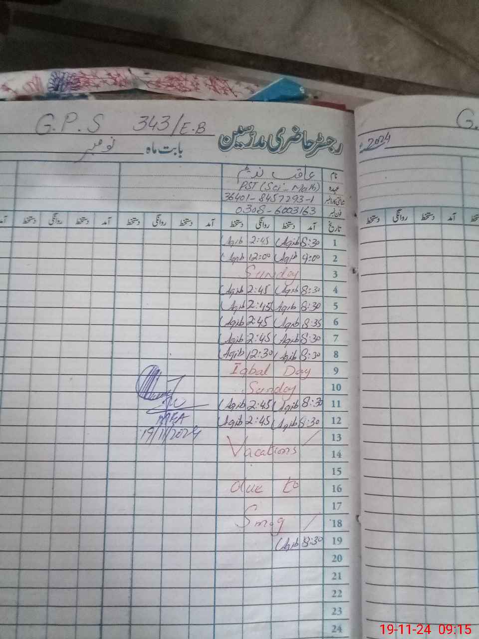 | Name: AA**** NA**** Designation: (School Headmaster's/Headmistress's) PST Phone/Cell Number: 03**** |