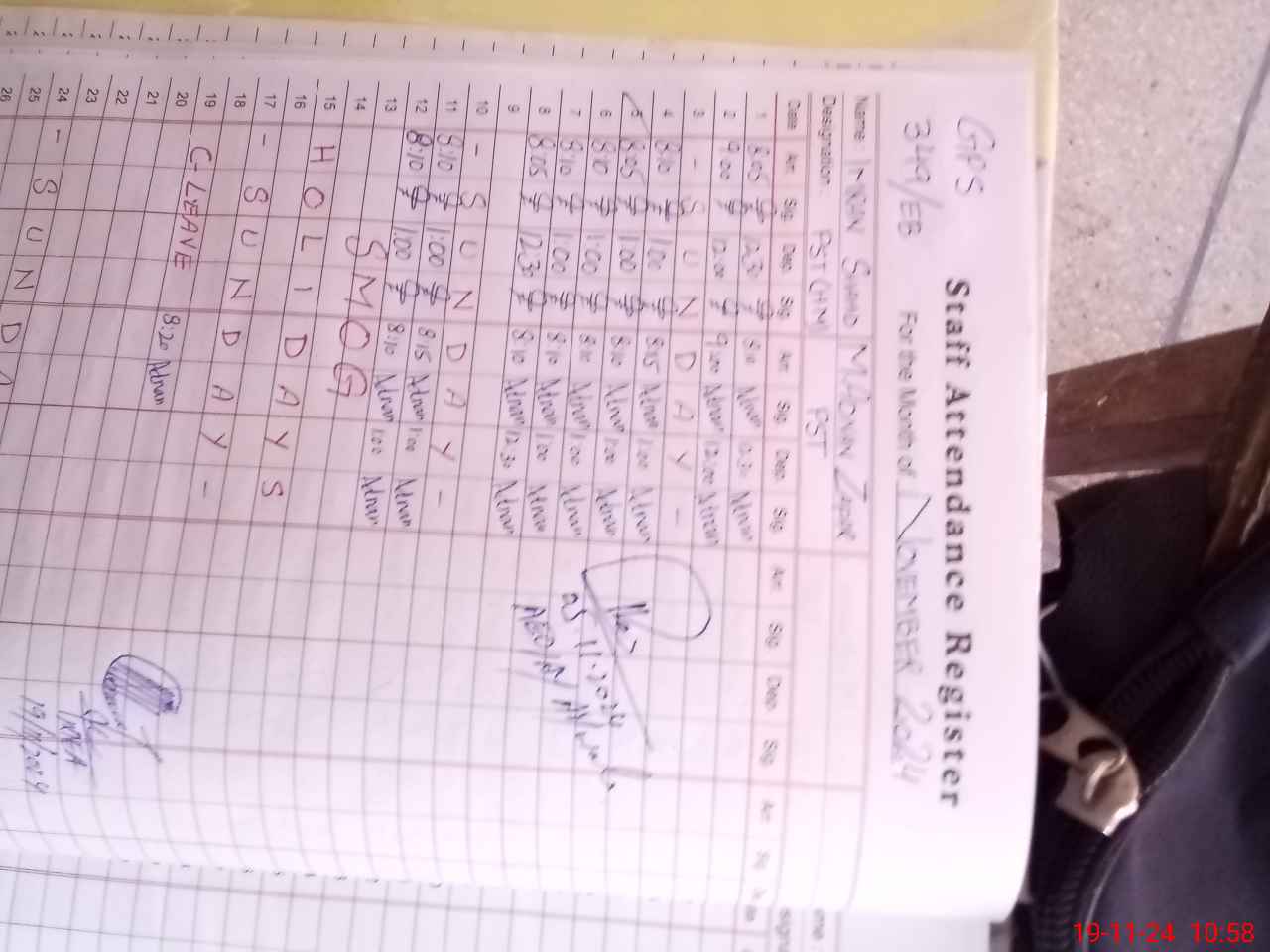 | CNIC | Full Name | Designation | R/C | Absence During Last Calender Month |